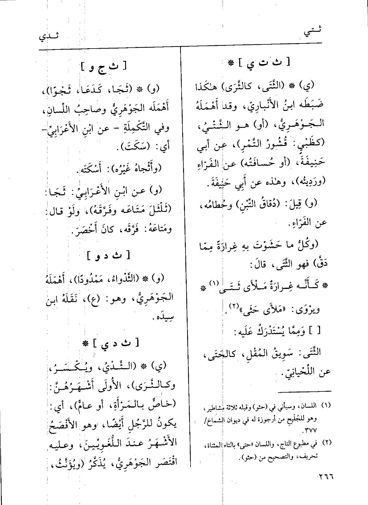 : (و (} ثَجَا، كدَعَا، {ثَجْواً) :) أهْمَلَهُ الجَوْهرِيُّ وصاحِبُ اللِّسانِ.