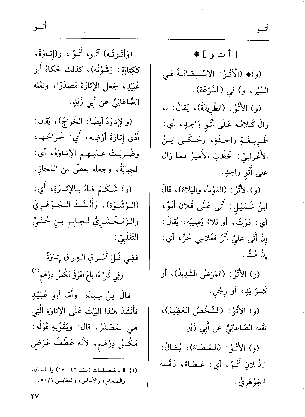 : (و {الأَتْوُ: الاسْتِقامَةُ فِي السَّيْرِ وَفِي (السُّرْعةِ) .
