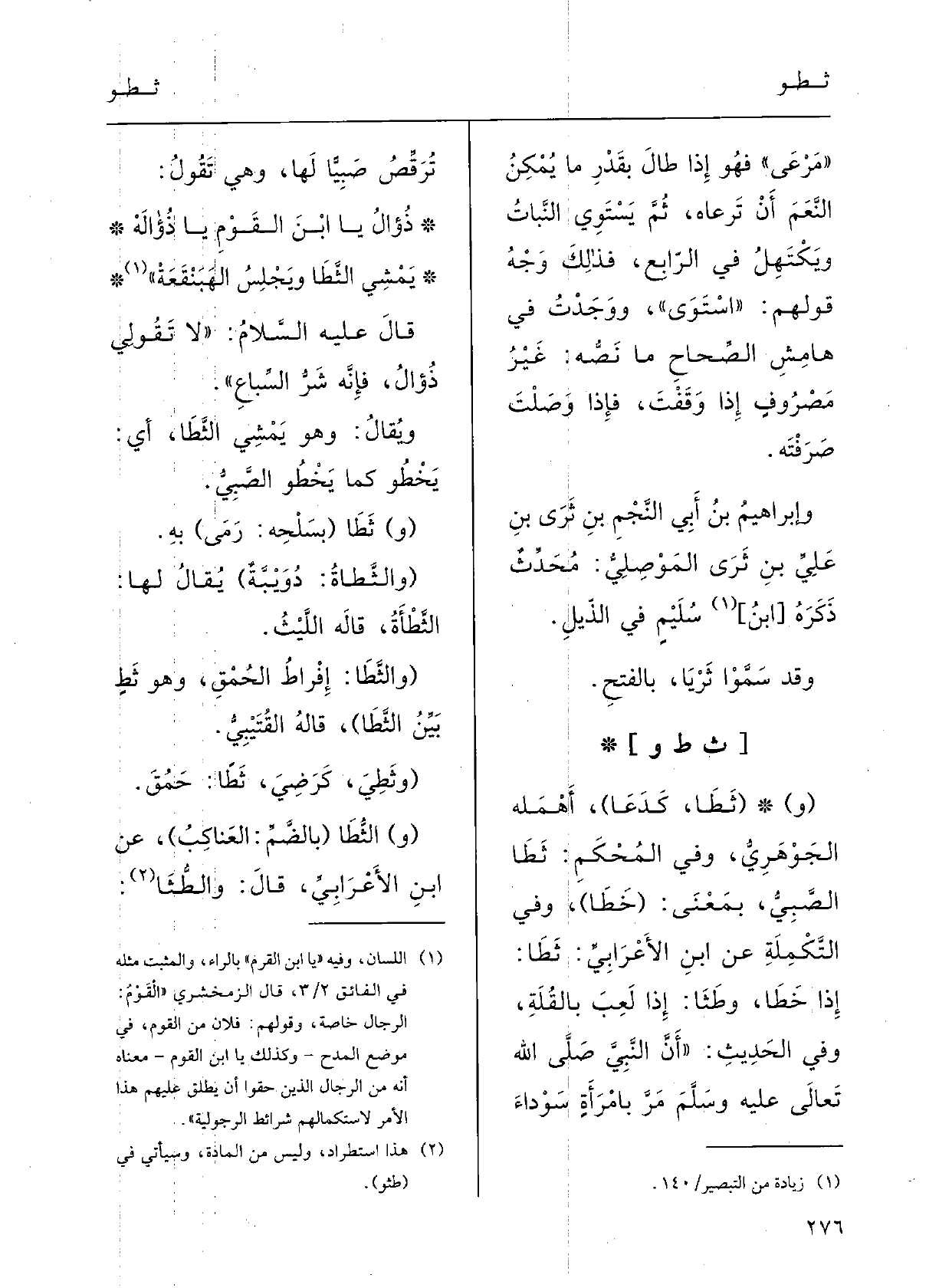 (وَفِي التّكْمِلَة عَن ابنِ الأَعْرابيِّ: ثَطَا إِذا خَطَا، وطَثَا إِذا لَعِبَ بالقُلَّةِ.