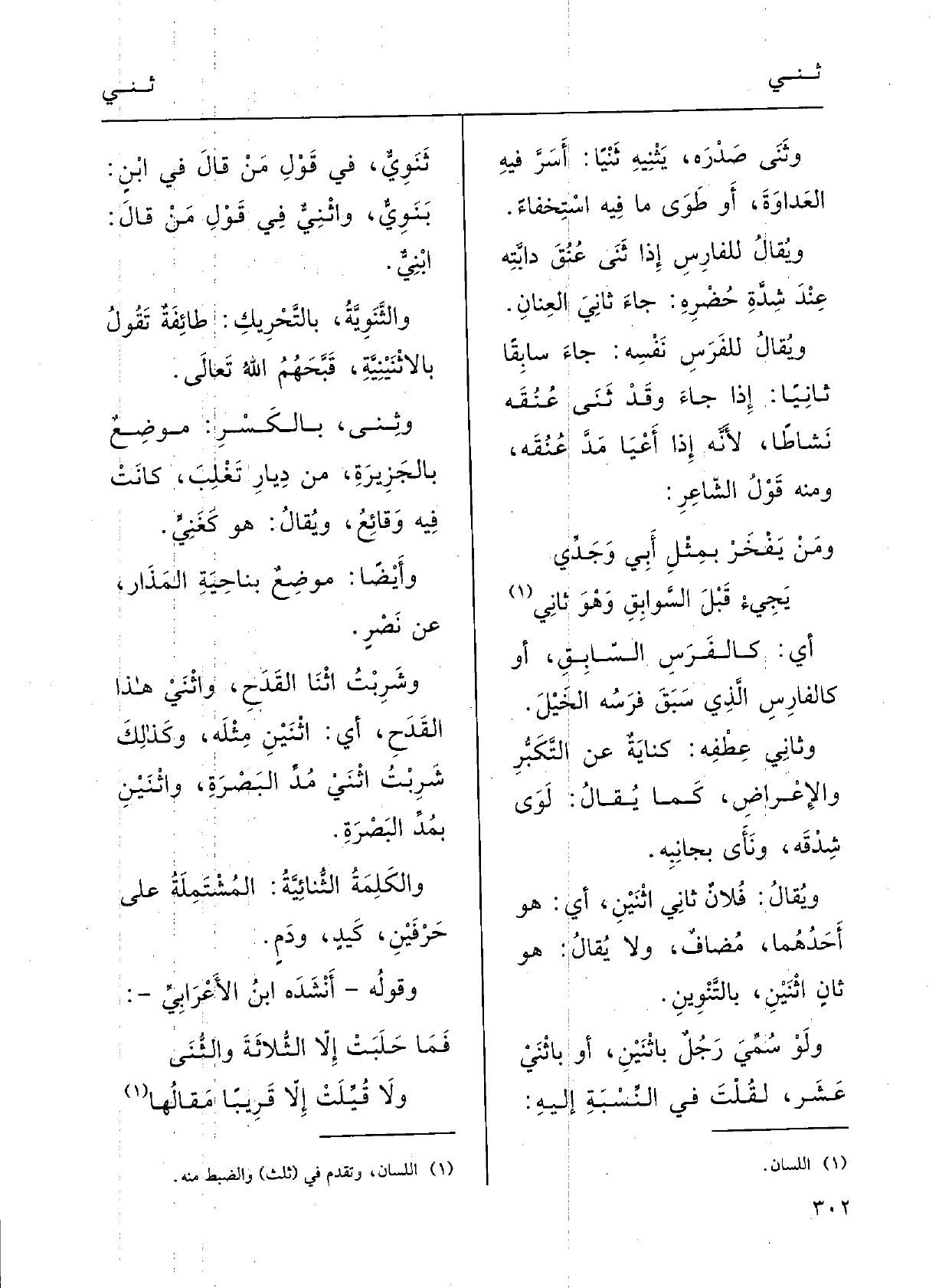 وشَرِبتُ أثنا القَدَح، واثْنَيْ هَذَا القَدَح، أَي اثْنَيْن مِثْلَه. وكَذلِكَ شَرِبْتُ اثْنَيْ مُدِّ البَصْرةِ، {واثْنَيْن بمدِّ البَصْرَةِ.