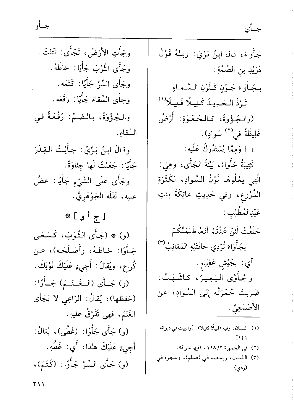 : (و (} جَأَى الثَوْبَ، كسَعَى، {جَأْواً: خَاطَهُ وأَصْلَحَهُ) ؛ عَن كُراعٍ.
