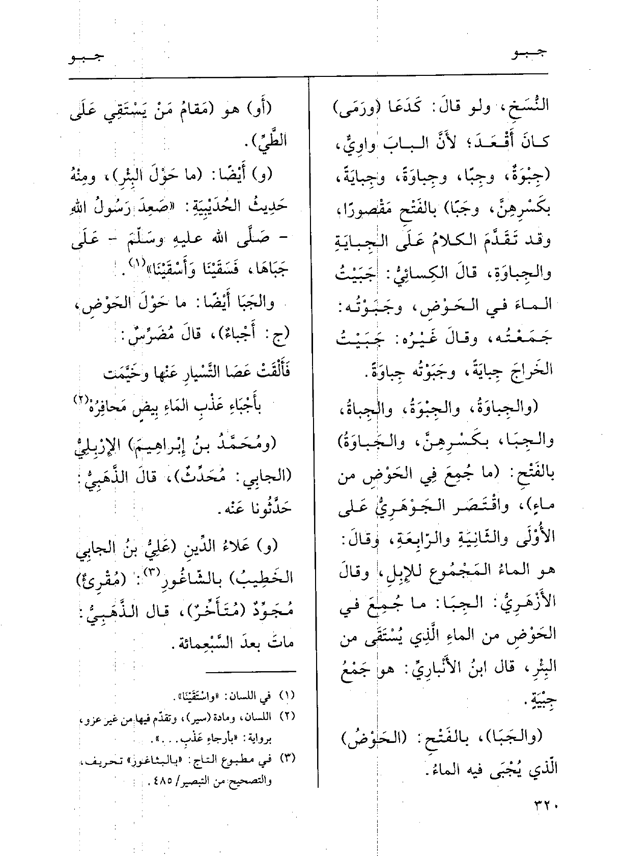 النسخِ وَلَو قالَ كدَعَا (ورَمَى) كانَ اقعد. لأنَّ البابَ واوِيٌّ؛ ( {جِبْوَةً} وجِباً {وجِباوَةً} وجِبايَةً، بكسرهِنَّ، {وجَباً) ، بالفتْحِ مَقْصوراً وَقد تقدَّمَ الكَلامُ على الجِبَايَةِ} والجِباوَةِ.