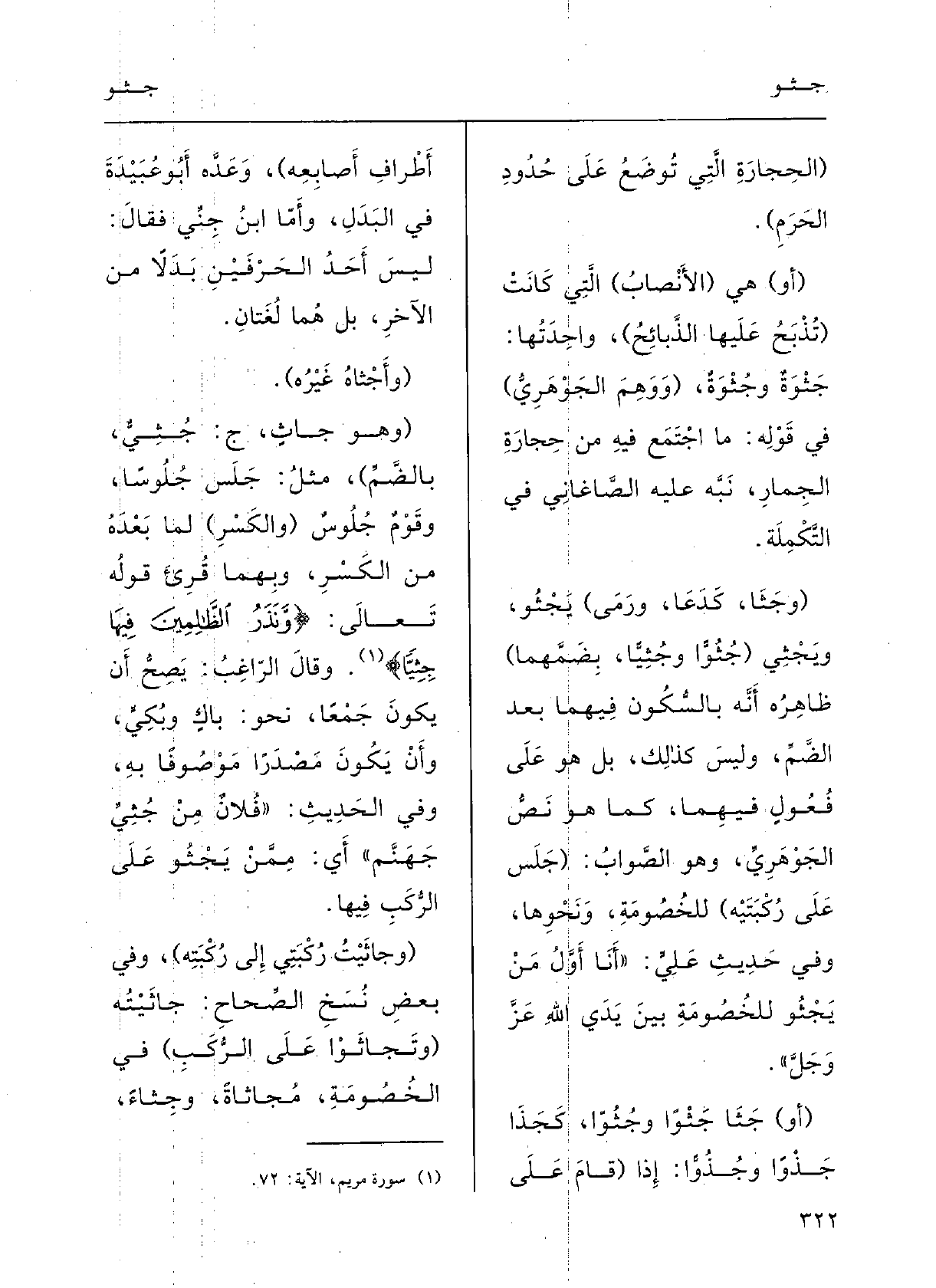 ( {وتَجاثَوْا على الرُّكَبِ) فِي الخصُومَةِ} مُجاثَاةً! وجِثاءً،