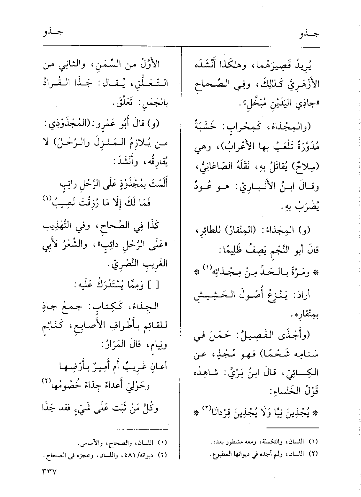 وحَوْلِيَ أَعْدَاءٌ} جِذَاءٌ خُصُومُهاوكلُّ مَنْ ثَبَتَ على شيءٍ فقد جَذَا