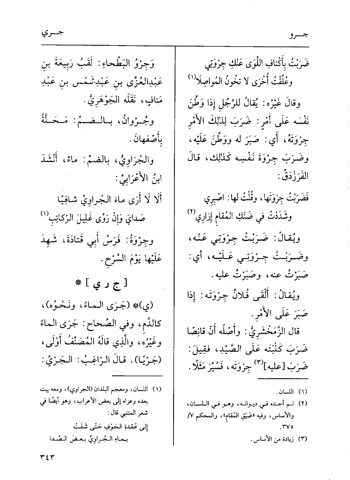 } والجُراوِيُّ، بالضمِّ: ماءٌ؛ أَنْشَدَ ابنُ الأعْرابيِّ: