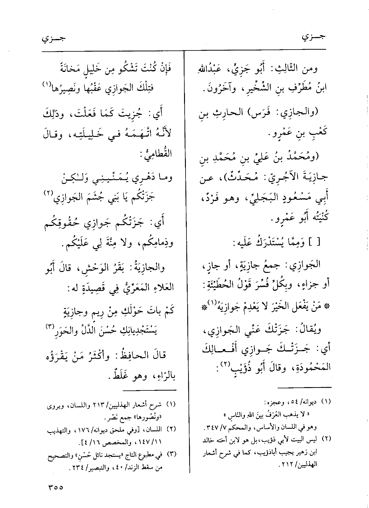 } الجَوازِي: جَمْعُ {جازِيَة أَو} جازٍ أَو {جَزَاءٍ، وبكلَ فُسِّر قَوْلُ الحُطَيْئة: