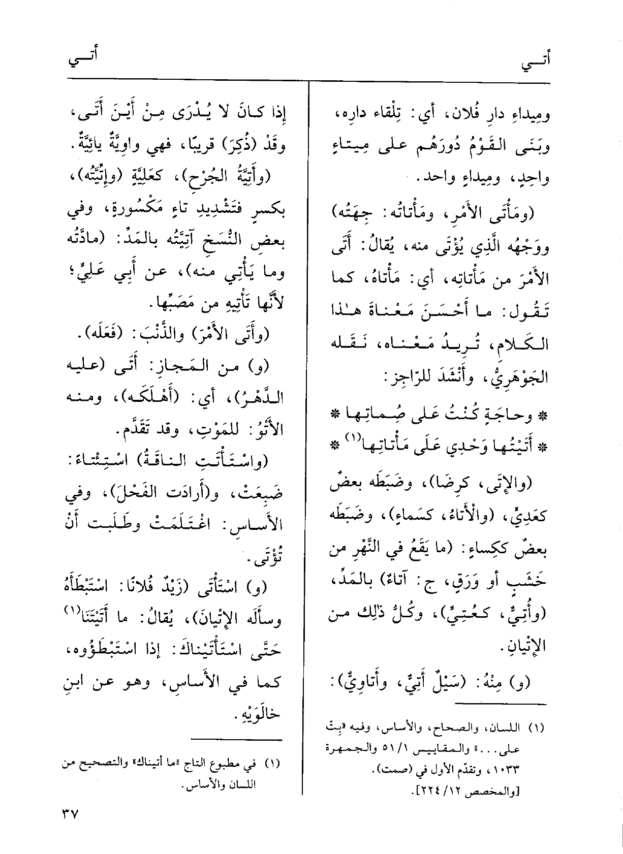 وحاجةٍ كنتُ على صُِماتِهاأَتَيْتُها وحْدِي على} مَأْتاتِها ( {والإِتَى، كرِضاً؛ وضَبَطَه بعضٌ كعَدِيَ، (} والأَتاءُ، كسَماءٍ، وضَبَطَه بعضٌ ككِساءٍ: (مَا يَقَعُ فِي النَّهْرِ من خَشَبٍ أَو وَرَقٍ، ج آتاءُ، بالمدِّ.