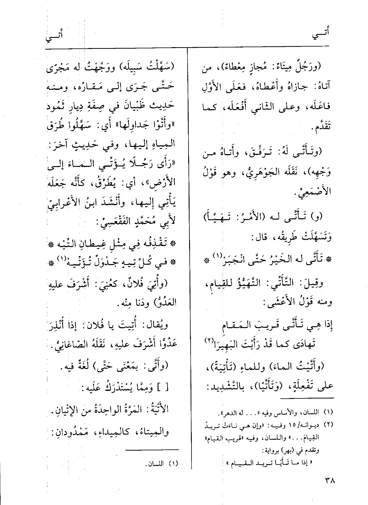إِذا هِيَ} تَأَتَّى قَريب القِيام تَهادَى كَمَا قد رأَيْتَ البَهِيرا ( {وأَتَيْتُ الماءَ وللماءِ (} تَأْتِيَةً) ، على تَفْعِلَةٍ، ( {وتَأَتِّياً، بالتَّشْديدِ: (سَهَّلْتُ سَبِيلَه ووَّجَّهْتُ لَهُ مَجْرىً حَتَّى جَرَى إِلَى مَقارِّهِ. وَمِنْه حدِيثُ ظُبْيان فِي صفَةِ دِيارِ ثَمُود: (} وأَتَّوْا جَداوِلَها) ، أَي سَهَّلُوا طُرُقَ المِياهِ إِلَيْهَا.
