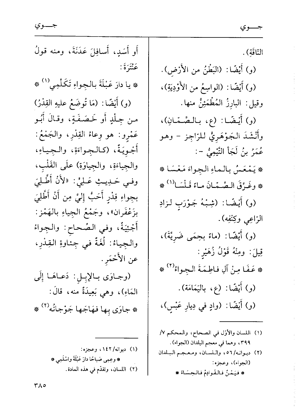 وَفِي الصِّحاحِ: {والجِوَاءُ والجِيَاءُ لُغَةٌ فِي جآوة القِدْرِ، عَن الأَحْمر.