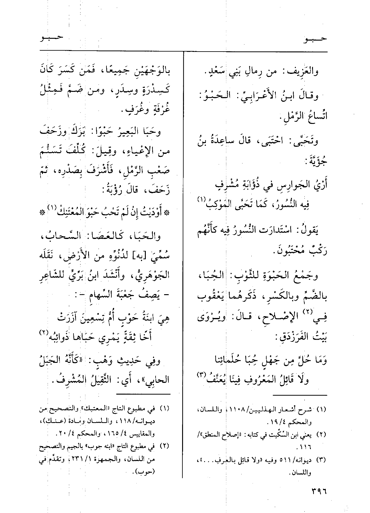 وقالَ ابنُ الأَعْرابي: {الحَبْوُ: اتِّساعُ الرَّمْل.