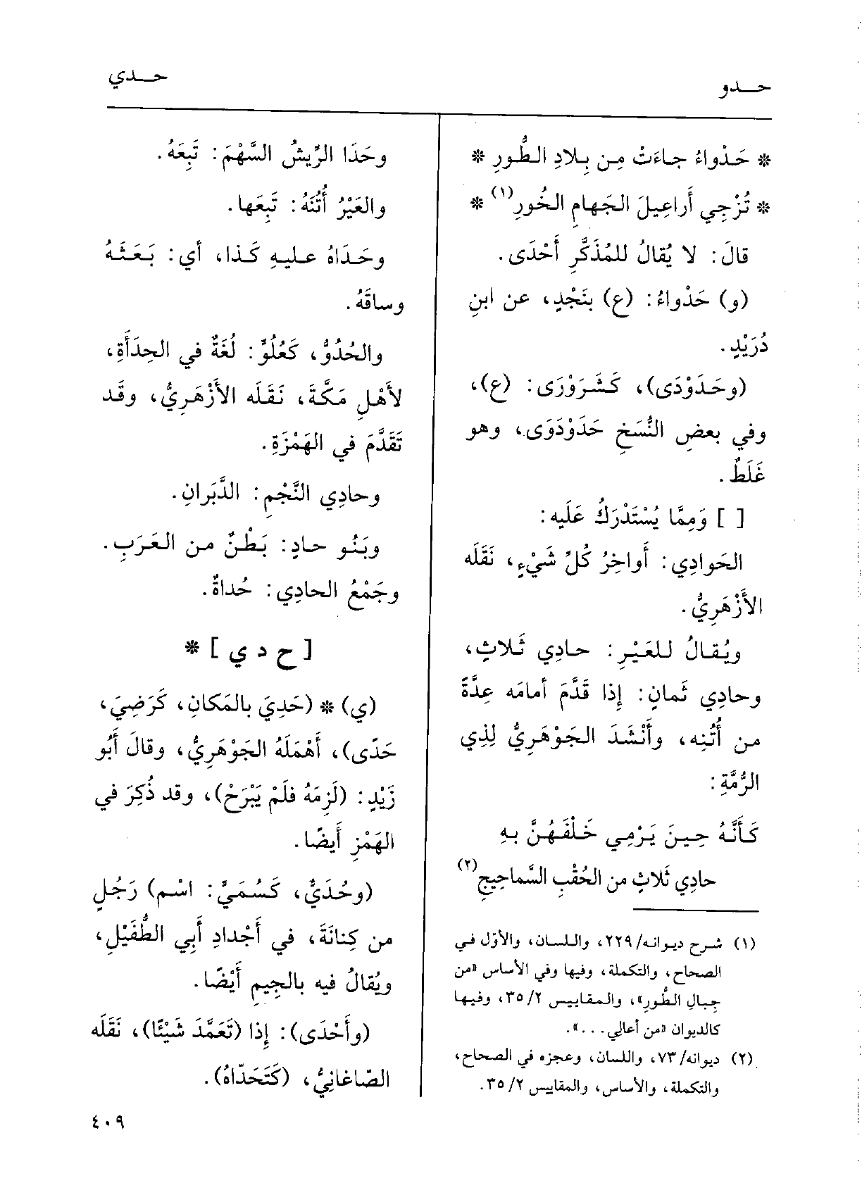 : (ى (} حَدِيَ بالمَكانِ، كَرَضِيَ، {حَدًى) : أَهْمَلَهُ الجَوْهرِيُّ.