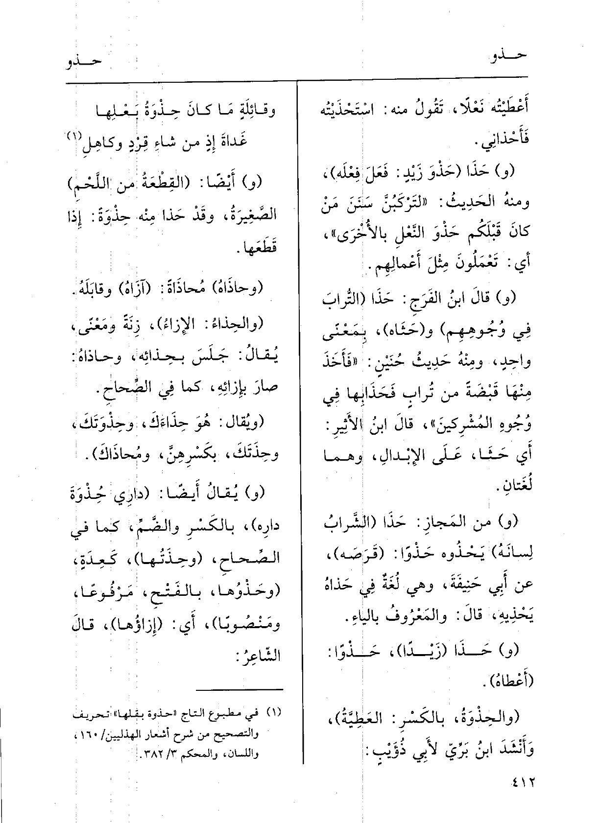(و) قالَ ابنُ الفَرَج: حَذَا (التُّرابَ فِي وُجُوهِهِم) و (حَثَاهُ) بمعْنىً واحِدٍ؛ وَمِنْه حدِيثُ حُنَيْن: (فأَخَذَ مِنْهَا قَبْضَةً من تُرابٍ {فَحَذَا بهَا فِي وُجُوهِ المْشْركِين) .