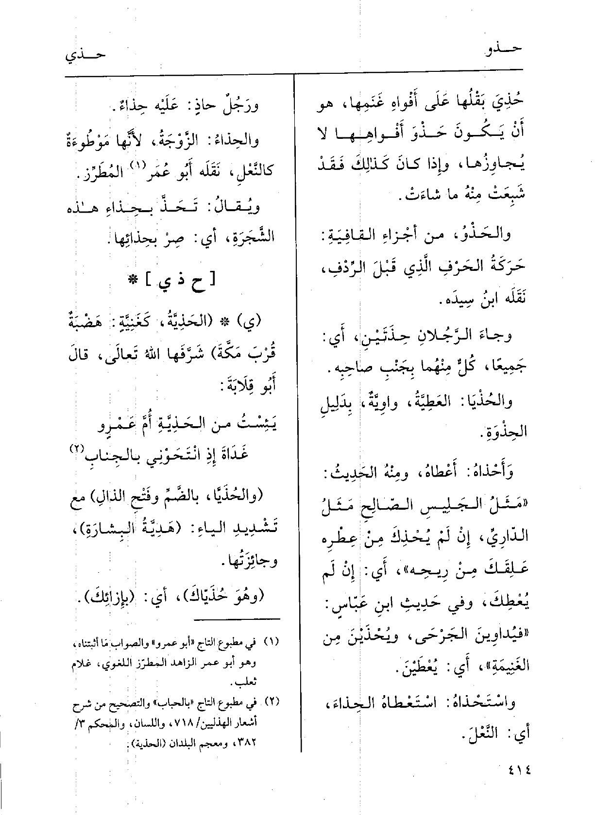 وجاءَ الرَّجُلانِ {حِذَتَيْنِ: أَي جَمِيعاً، كلٌّ مِنْهُمَا بجَنْبِ صاحِبهِ.