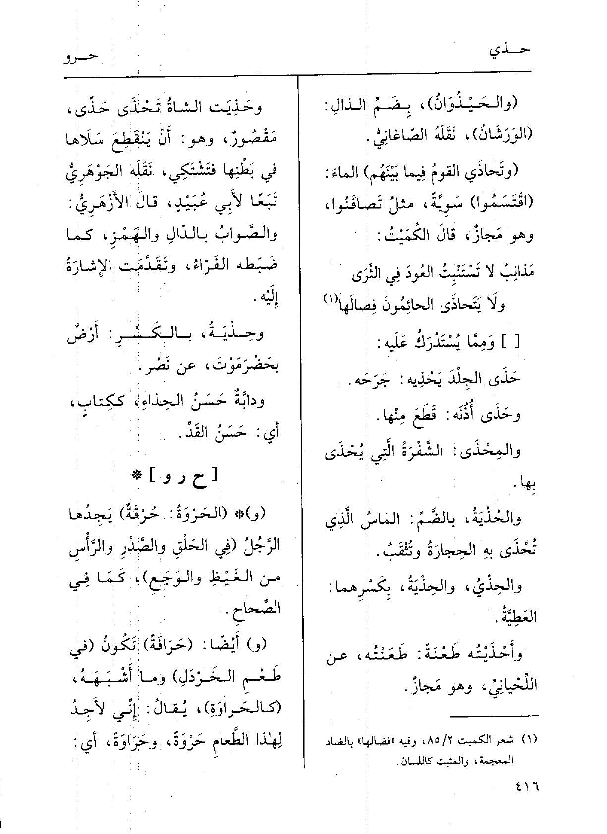 وَلَا {يَتَحاذَى الحائِمُونَ فِصالَها وممَّا يُسْتدرك عَلَيْهِ: