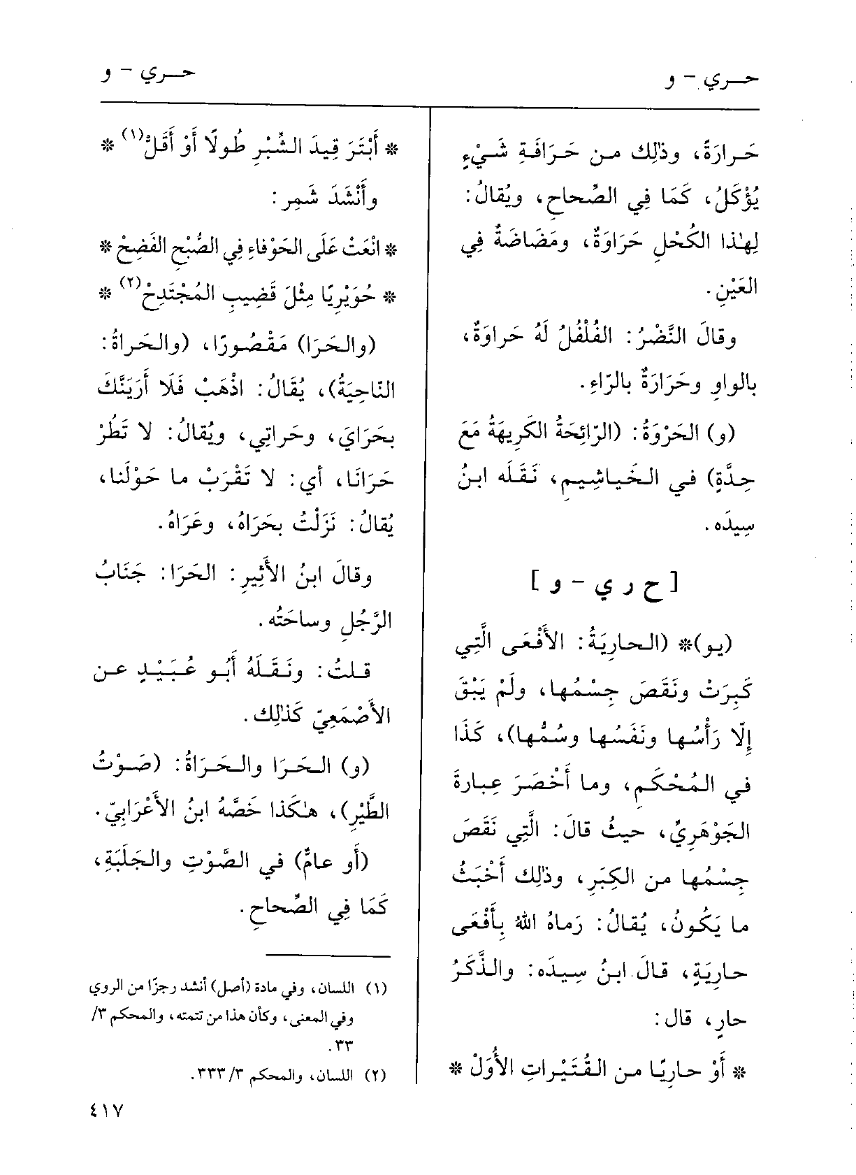 } حوَيْرِياً مثلَ قَضِيبِ المُجْتَدِحْ ( {والحَرَا) ، مَقْصوراً، (} والحَراةُ: النَّاحِيَةُ) . يقالُ: اذْهَبْ فَلَا أَرَيَنَّكَ {بحَرايَ،} وحَرَاتِي.