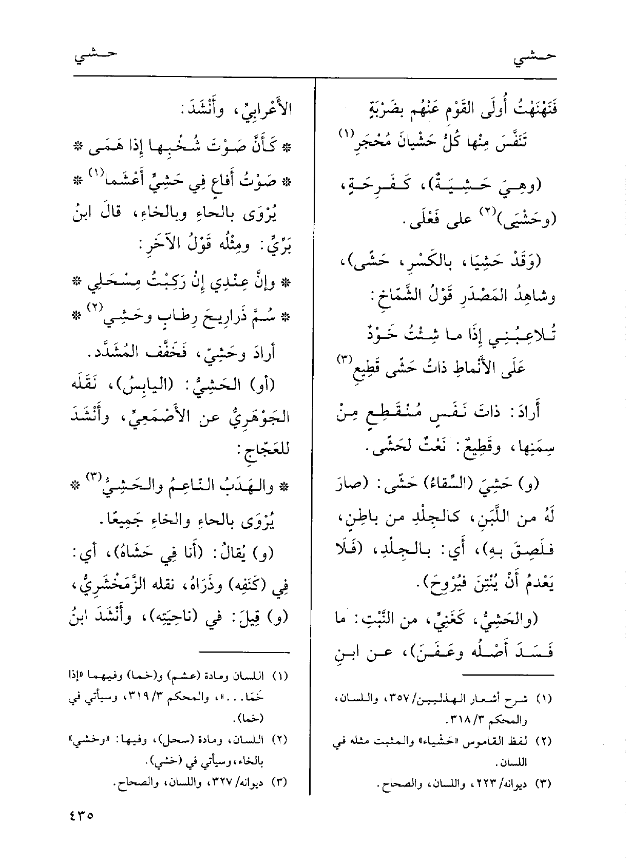(أَو) {الحَشِيُّ: (اليابِسُ) ؛ نَقَلَه الجَوهريُّ عَن الأصمعيِّ وأَنْشَدَ للعجَّاج: