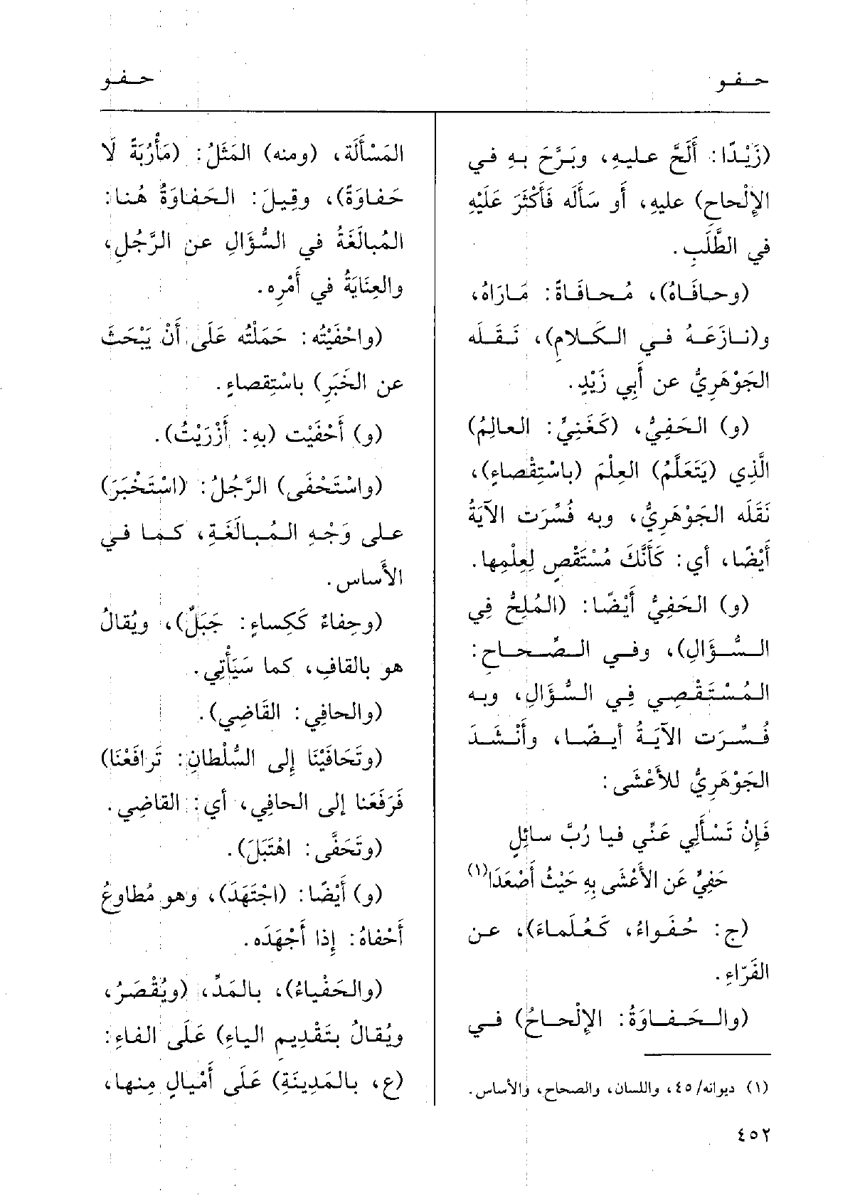 ( {وأحْفَيْتُه: حَمَلْتُه على أَنْ يَبْحَثَ عنِ الخَبَرِ) باسْتِقْصاءٍ.