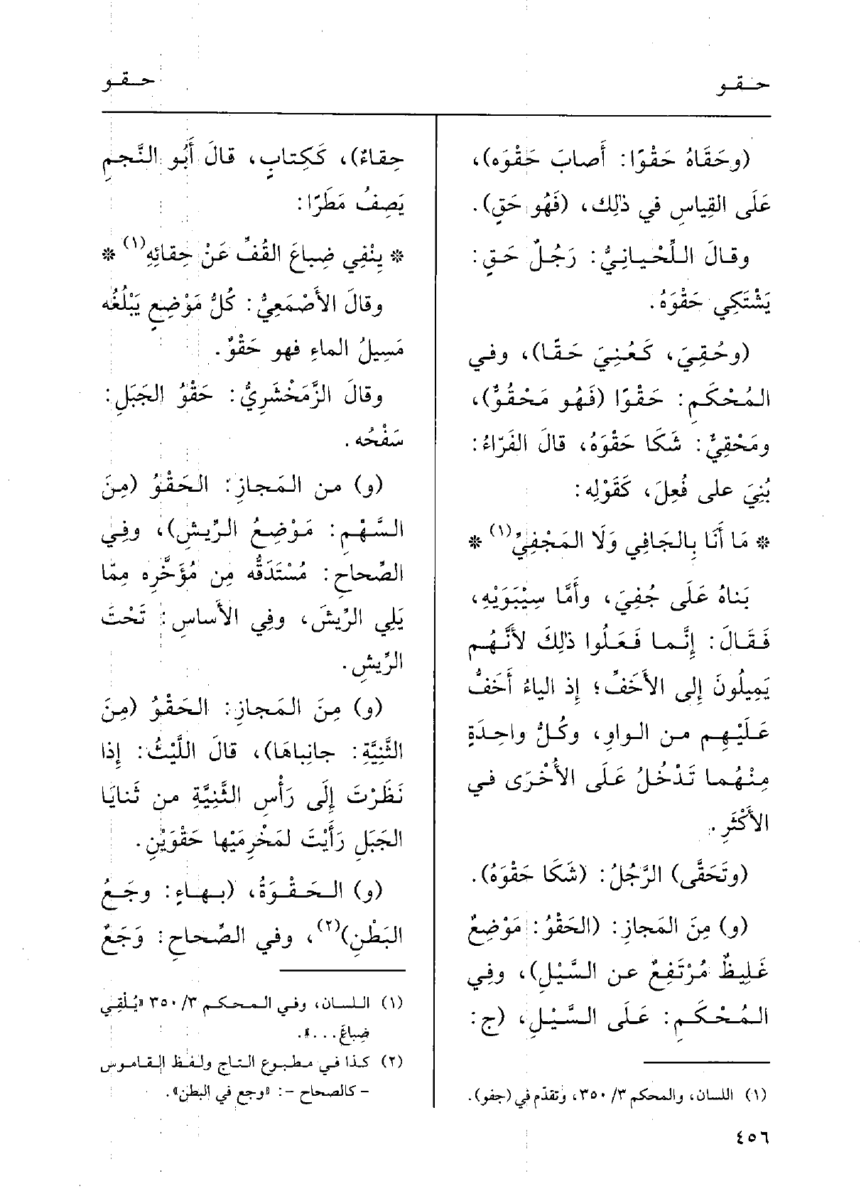 يَنْفِي ضِبَاعَ القُفِّ عَن} حِقَائِه وقالَ الأصمعيُّ: كلُّ مَوْضِع يَبْلغُه مَسِيلُ الماءِ فَهُوَ {حَقْوٌ.