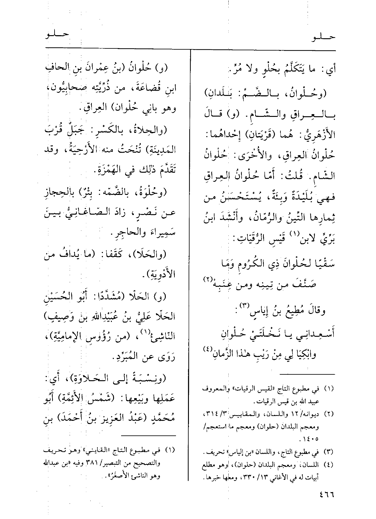 قُلْتُ: أَمَّا حُلْوانُ العِراقِ فَهِيَ بُلَيْدةٌ وَبِئَةٌ يُسْتَحْسن من ثمارِها التِّين والرُّمَّان؛ وأَنْشَدَ ابنُ برِّي لقَيْس الرُّقيّات: