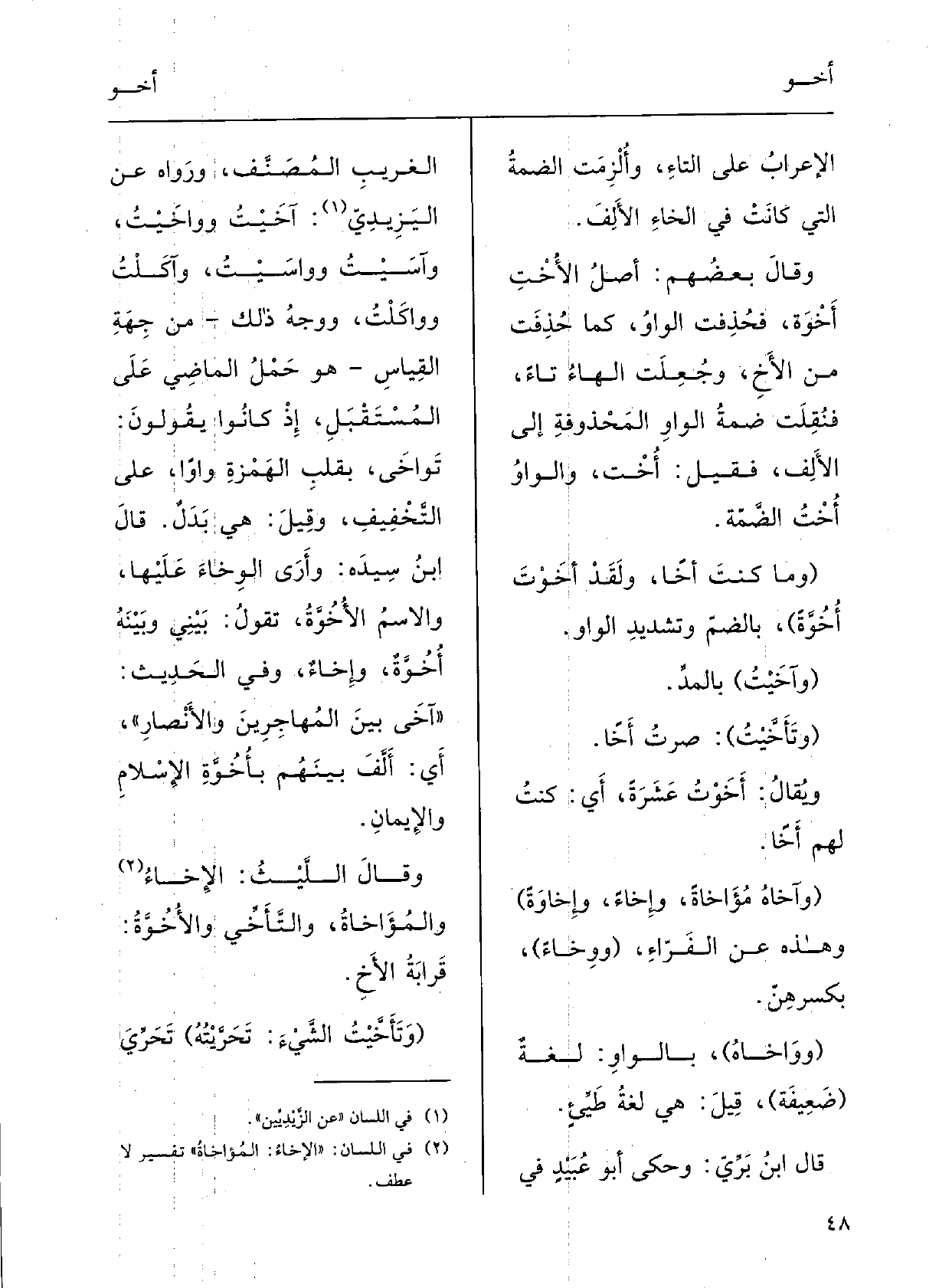 قالَ ابنُ بَرِّيِ: وحَكَى أَبو عبيدٍ فِي غرِيبِ المصنَّفِ، ورَوَاهُ عَن اليَزِيدي:} آخَيْتَ {ووَاخَيْتَ وآسَيْتَ ووَاسَيْتَ وآكَلْتَ ووَاكَلْتَ، ووَجْهُ ذَلِكَ مِن جهَةِ القِياسِ هُوَ حَمْلُ الماضِي على المُسْتَقْبلِ إِذْ كَانُوا يَقولُونَ:} تُواخِي، بقَلْبِ الهَمْزةِ واواً على التَّخْفيفِ، وَقيل: هِيَ بَدَلٌ.