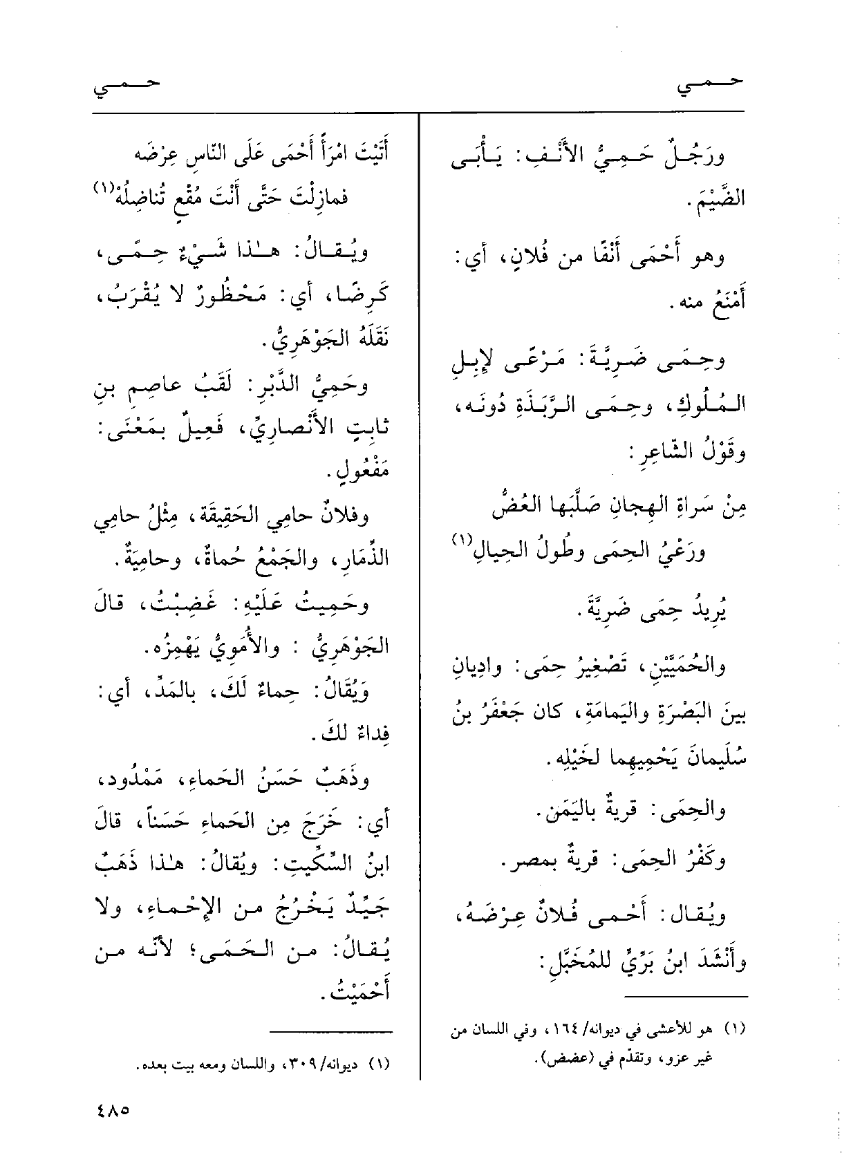 من سَراةِ الهِجانِ صَلَّبَها العُض ورَعْيُ} الحِمَى وطولُ الحِيال يُريدُ: {حِمَى ضَرِيَّة.
