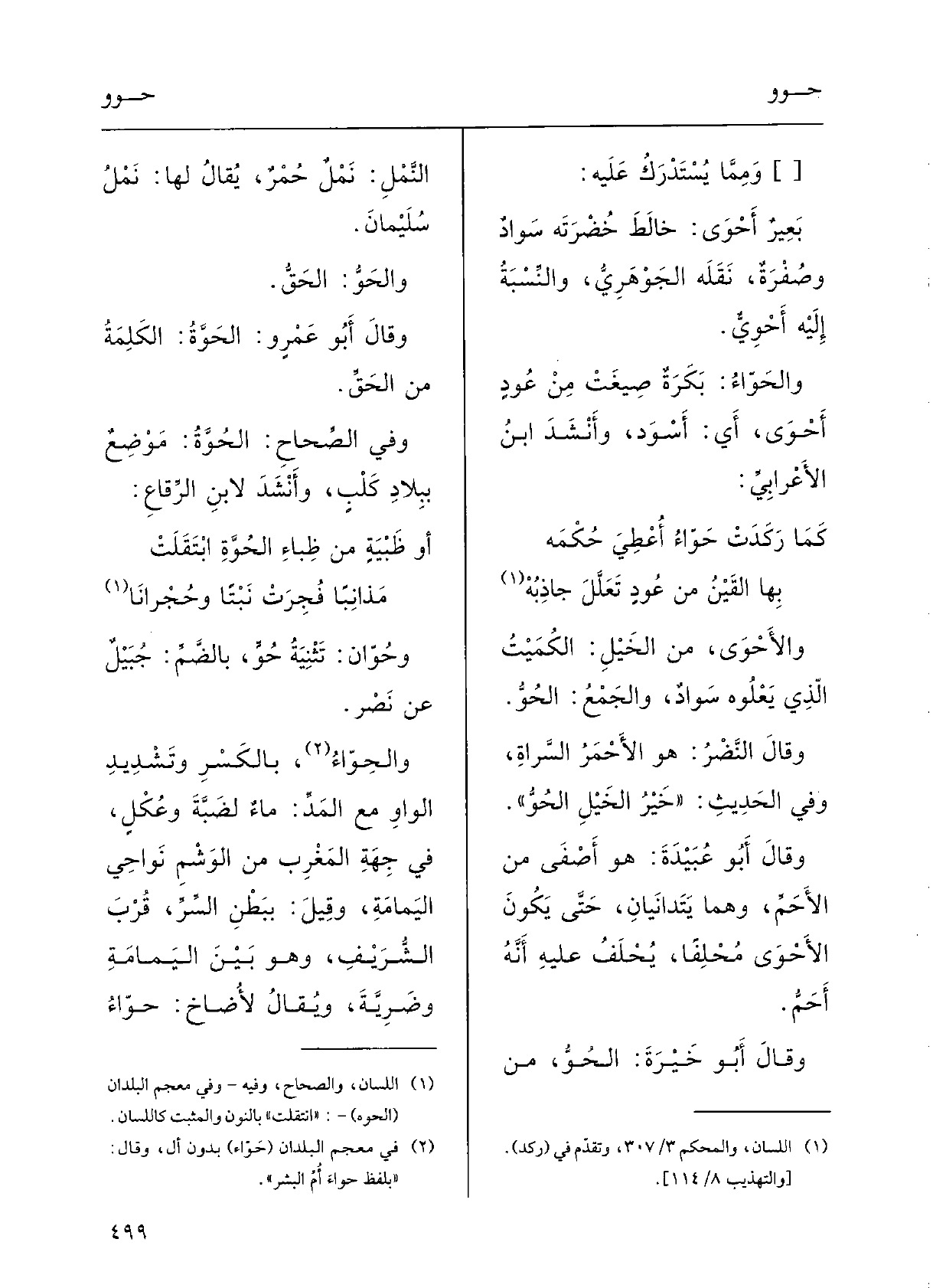 وقالَ أَبو خَيْرَةَ: الحُوُّ من النَّمْلِ نَمْلٌ حُمْرٌ يقالُ لَهَا نَمْلُ سُلَيْمان.