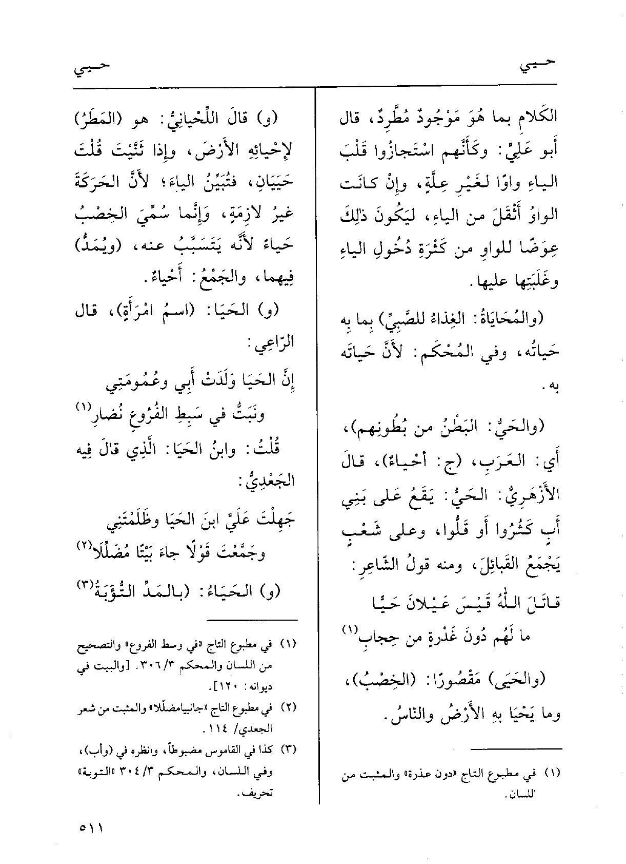 قالَ الأَزْهرِيُّ: الحَيُّ يَقَعُ على بَني أَبٍ كَثُرُوا أَو قَلُّوا، وعَلى شَعْبٍ يجمَعُ القَبائِلَ؛ وَمِنْه قوْلُ الشاعِرِ: