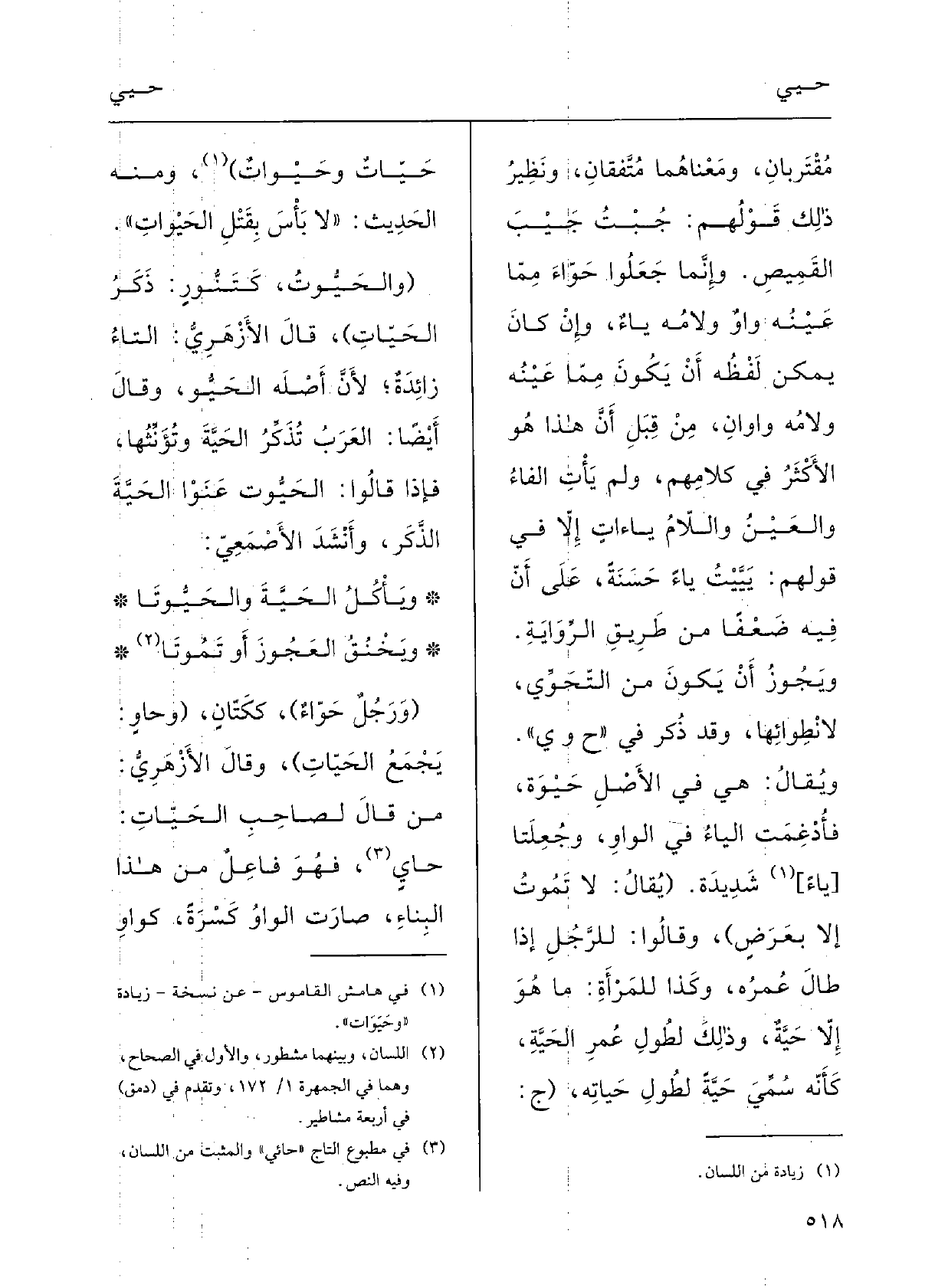 قالَ الْأَزْهَرِي التاءُ زائِدَةٌ لأنَّ أَصْلَه {الحَيُّو.