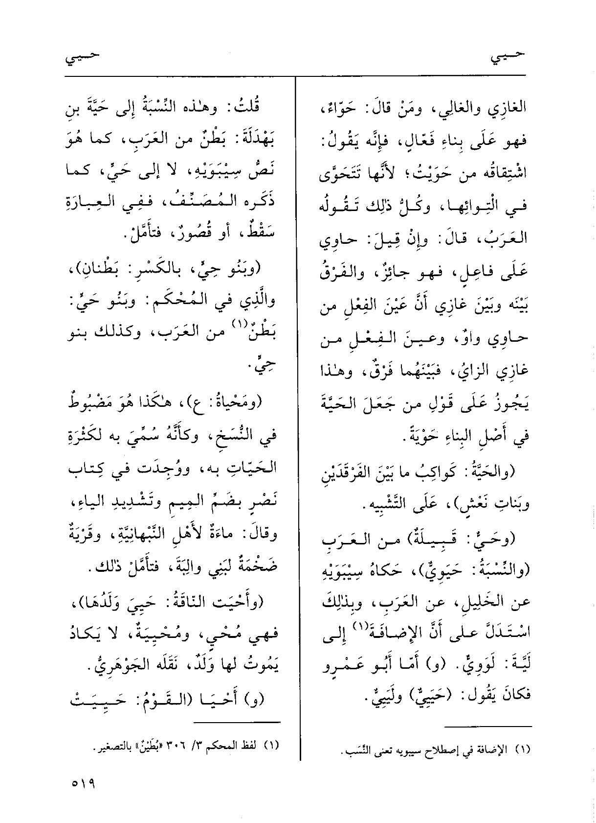 وَالَّذِي فِي المُحْكَم: وبَنُو} حَيَ بَطْنٌ مِن العَرَبِ، وكذلكَ بَنُو حِيَ.