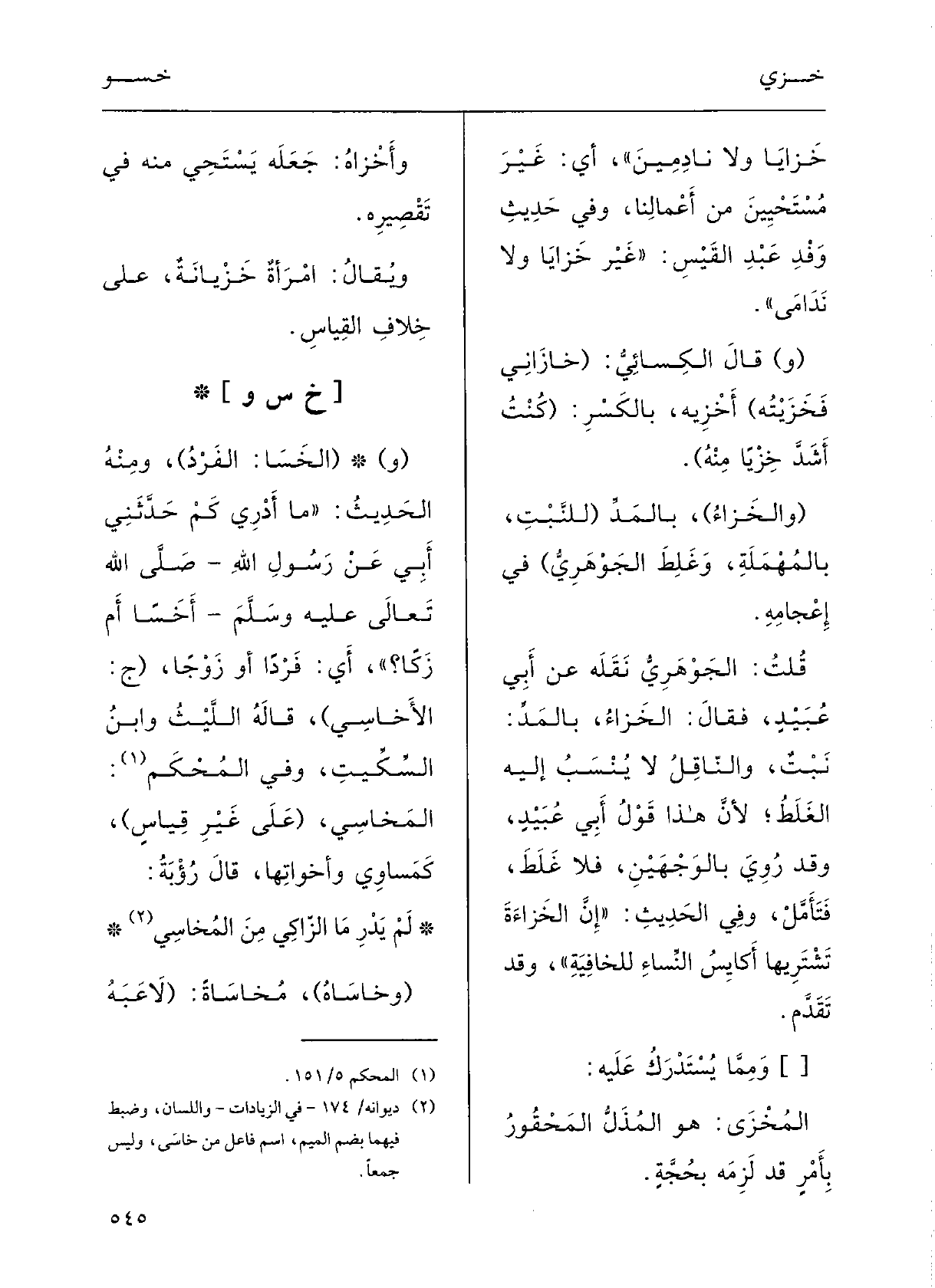 : (و (} الخَسَا: الفَرْدُ) ؛ وَمِنْه الحدِيثُ: (مَا أَدْرِي كَمْ حدَّثنِي أَبي عَن رَسُولِ اللَّهِ صلى الله عَلَيْهِ وَسلم {أَخَساً أَمْ زَكاً) ، أَي فَرْداً أَو زَوْجاً.