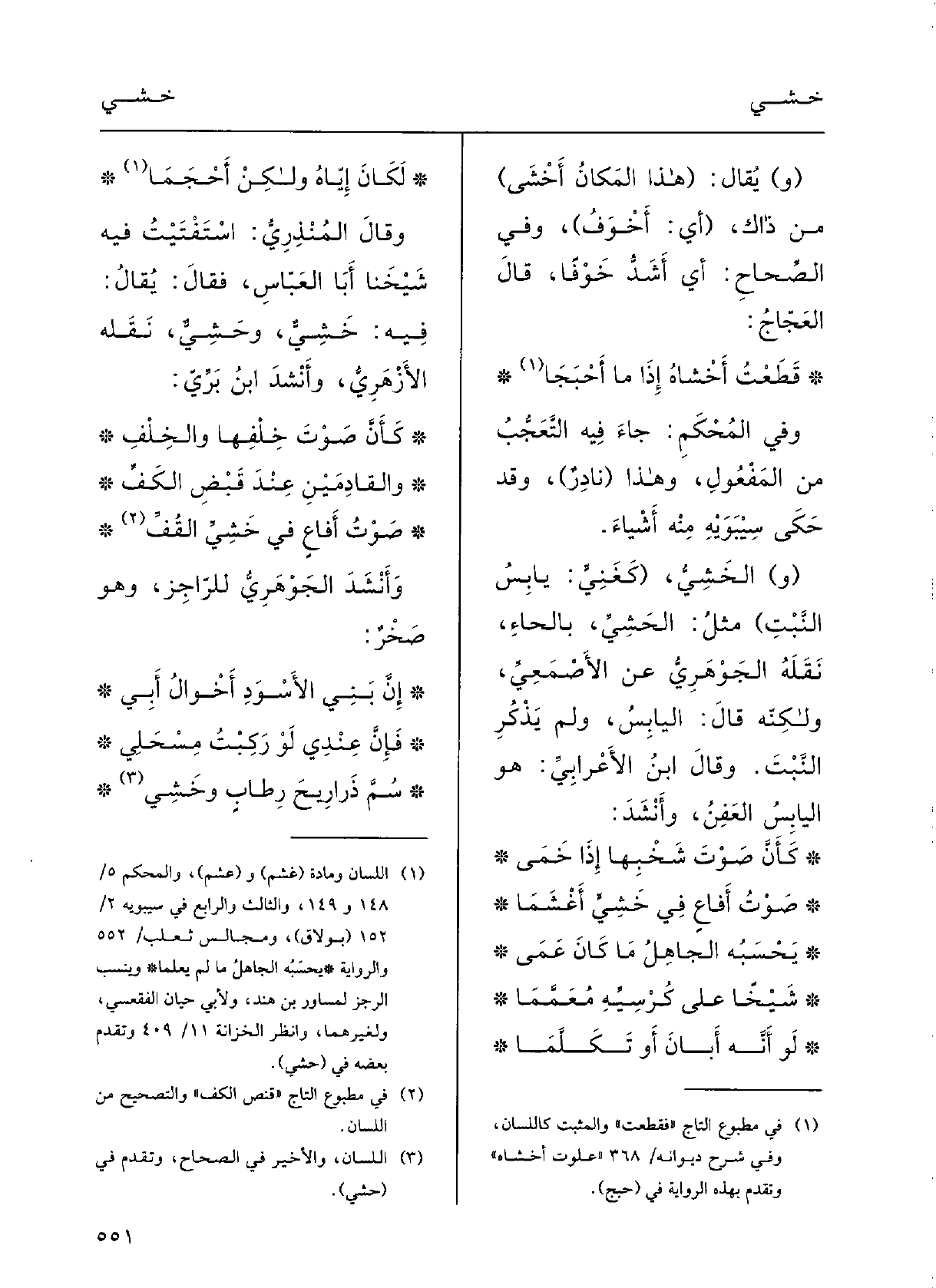 لكانَ إيَّاه وَلَكِن أَحْجَماوقالَ المُنْذِري: اسْتَفْتَيْتُ فِيهِ شيْخَنَا أَبا العبَّاس فقالَ: يقالُ فِيهِ خَشِيّ وحَشِيّ؛ نَقَلَهُ الأزْهرِيُّ؛ وأَنْشَدَ ابنُ برِّي: