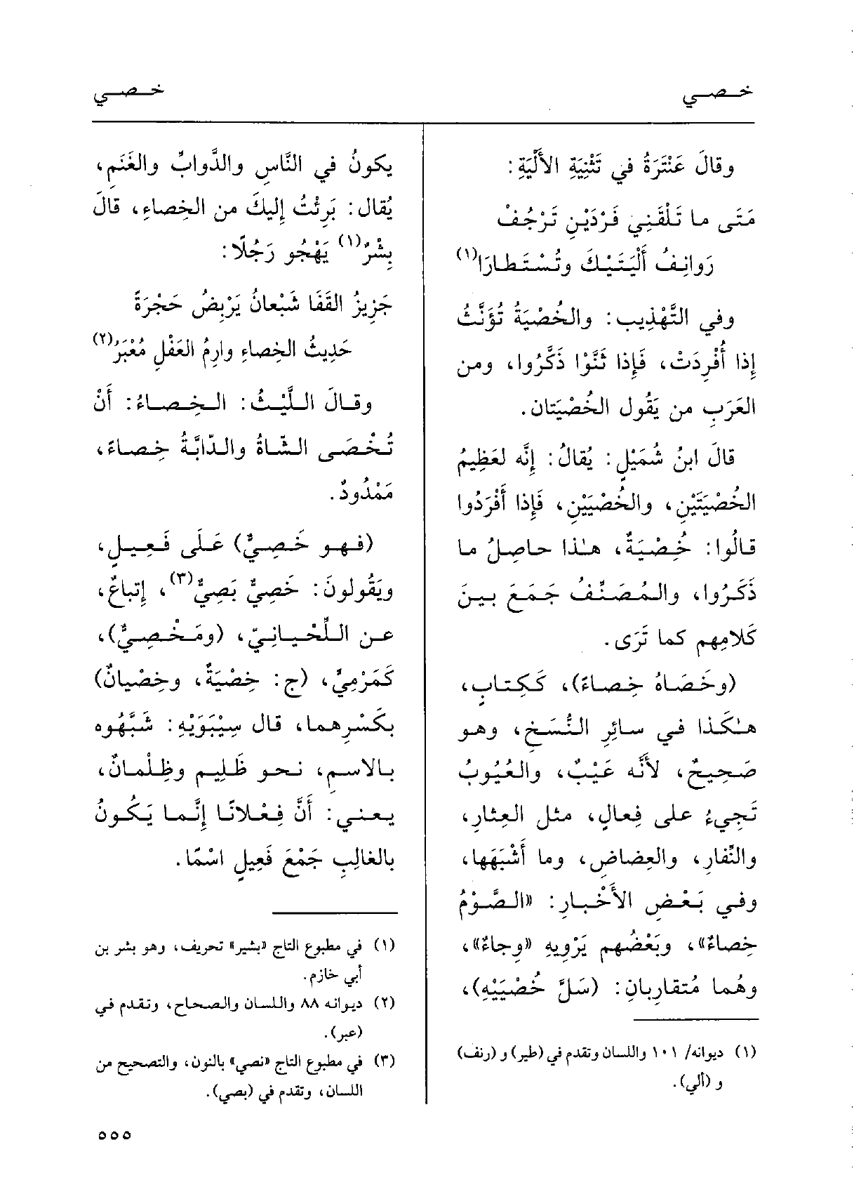 روانِفُ أَلْيَتَيْكَ وتُسْتطاراوفي التَّهْذيبِ: {والخُصْية تُؤَنَّث إِذا أُفْرِدَتْ فَإِذا ثَنَّوا ذَكَّروا، ومِنَ العَرَبِ مَنْ يقولُ الخُصْيَتان.