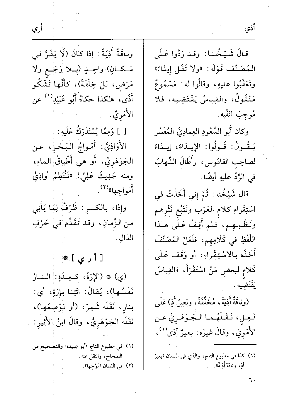 وكانَ أَبو السّعود العماديّ المُفَسِّرُ يقولُ: قُولُوا: {الإيذاءُ إيذاءُ لصاحِبِ الْقَامُوس.