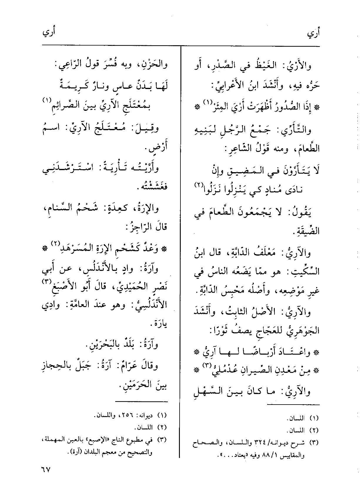 من مَعْدِن الصِّيرانِ عُدْمُليُّوالآرِيُّ: مَا كانَ بينَ السَّهْل والحَزْنِ؛ وَبِه فُسِّرَ قَوْلُ الرَّاعِي: