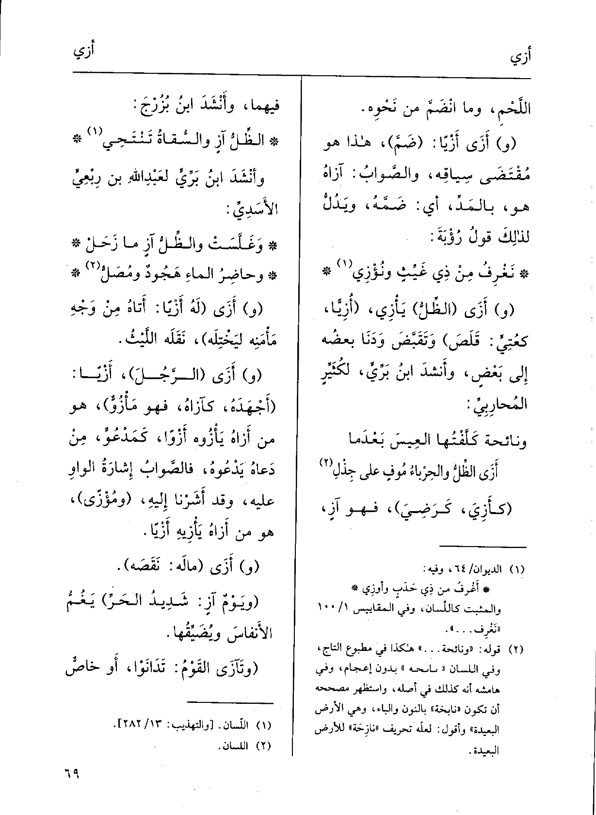 الظِّلُّ آزٍ والسُّقاةُ تَنْتَحِي وأَنْشَدَ ابنُ بَرِّي لعبدِ اللَّهِ بنِ رِبْعي الأَسدِيّ: