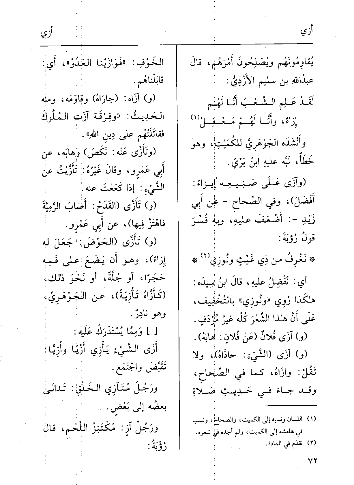 (وآزَى (الشَّيءَ: حاذَاهُ؛ وَلَا تَقُل وَازَاهُ؛ كَمَا فِي الصِّحاح.