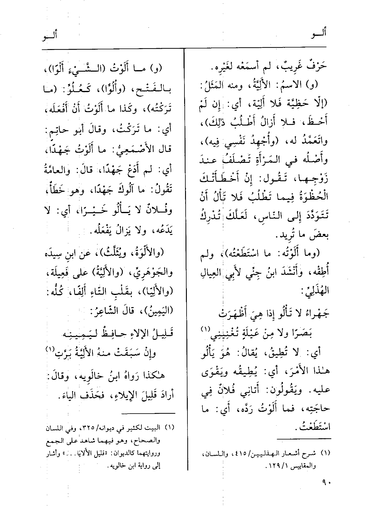 قَلِيلُ} الإِلاءِ حافِظٌ ليَمِينِهِوإنْ سَبَقَتْ مِنْهُ {الأَلِيَّةُ بَرَّتِهكذا رَوَاهُ ابنُ خَالَوَيْه؛ وقالَ: أَرادَ قَليلَ} الإيلاءِ فحذَفَ الياءَ.