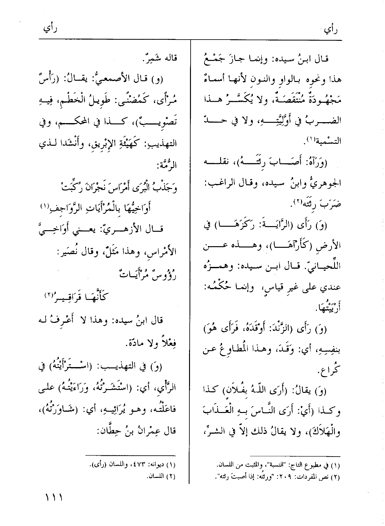 (و) فِي التَّهذيبِ: ( {اسْتَرْأَيْتُه) فِي} الرَّأْي: أَي (اسْتَشَرْتُه؛ {ورَاءَيْتُه) ، على فاعَلْته، وَهُوَ} يُرائِيهِ، أَي (شاوَرْتُه) ؛ قالَ عِمْرانُ ابنُ حطَّان: