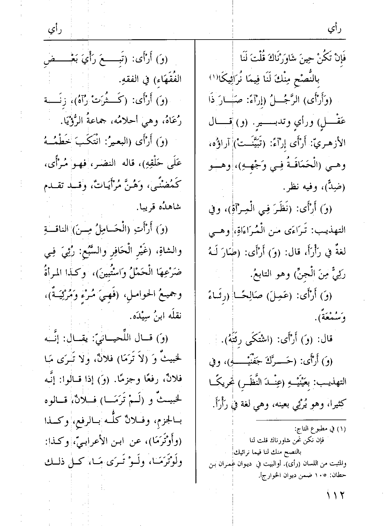 (و) قالَ الأَزْهريُّ: {أَرْأَى} إرْآءً (تَبَيَّنَتْ) {آرَاؤُه، وَهِي (الحَماقَةُ فِي وجْهِهِ) ، وَهُوَ (ضِدٌّ) وَفِيه نَظَرٌ.