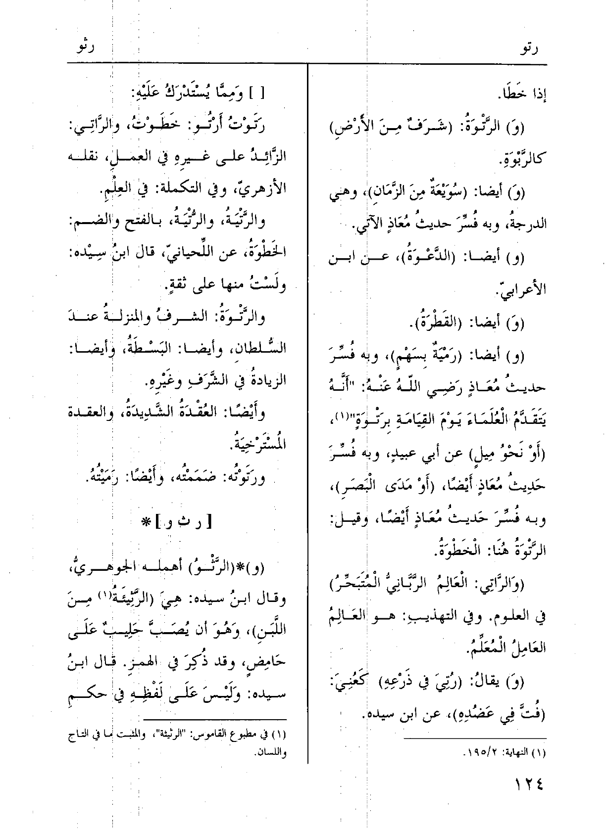 : (و (} الرَّثْوُ) : أَهْملهُ الجوهريُّ.