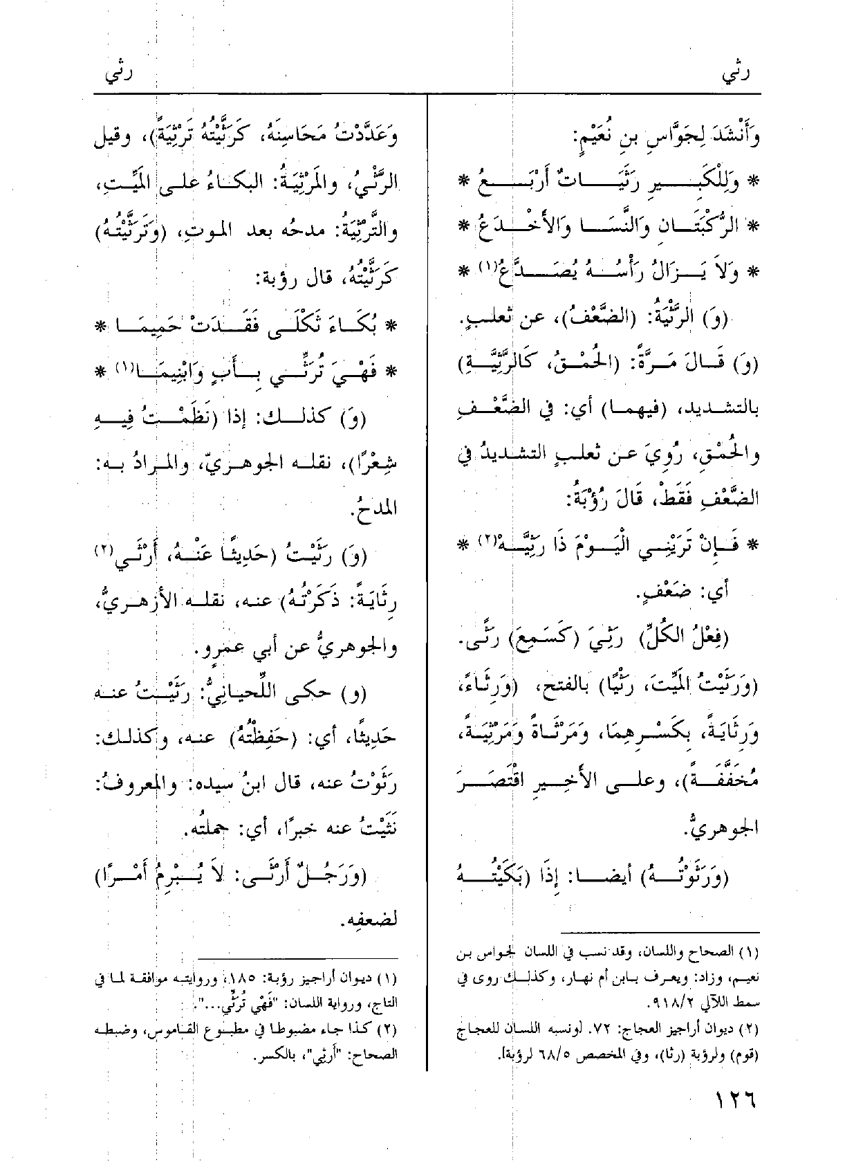 (} وتَرَثَّيْتُه) : {كَرَثَّيْتُه؛ قالَ رُؤبَة: