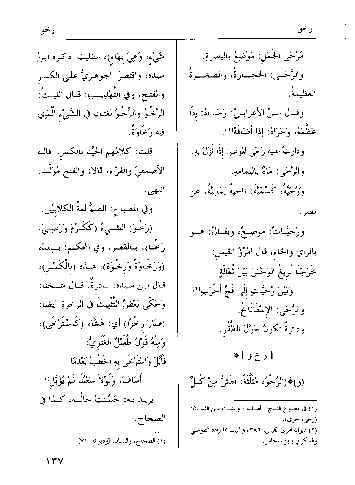 وَفِي التَّهذيبِ: قَالَ الليْثُ:} الرَّخْوُ {والرُّخْوُ لُغَتانِ فِي الشيءِ الَّذِي فِيهِ رَخاوَةٌ.