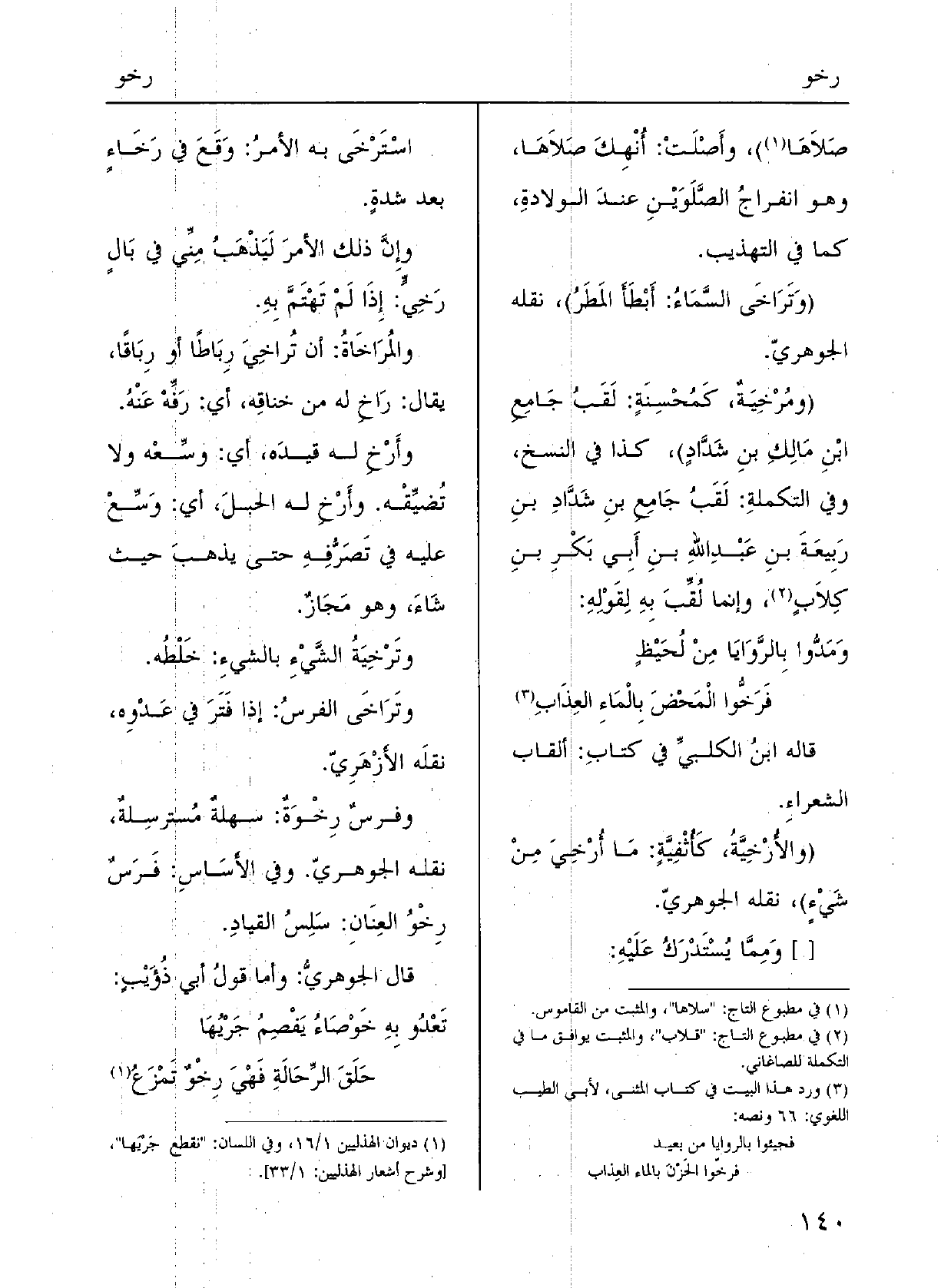( {وتَراخَى السَّماءُ: أَبْطَأَ المَطَرُ) ؛ نقلَهُ الجَوْهريُّ.