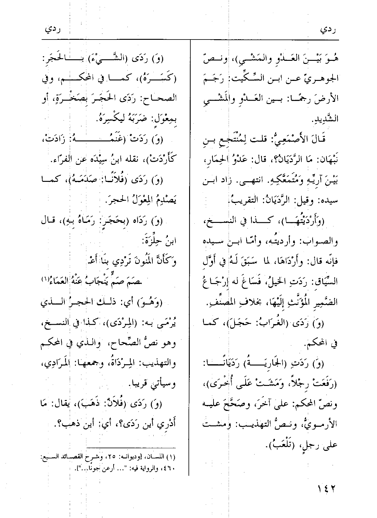 قالَ الأصْمعيُّ: قُلْتُ لُمنْتَجِع بنِ نَبْهان: مَا {الرَّدَيانُ؟ قالَ: عَدْوُ الحِمارِ بَيْنَ آرِيِّهِ ومُتَمَعَّكِه، انتَهى.