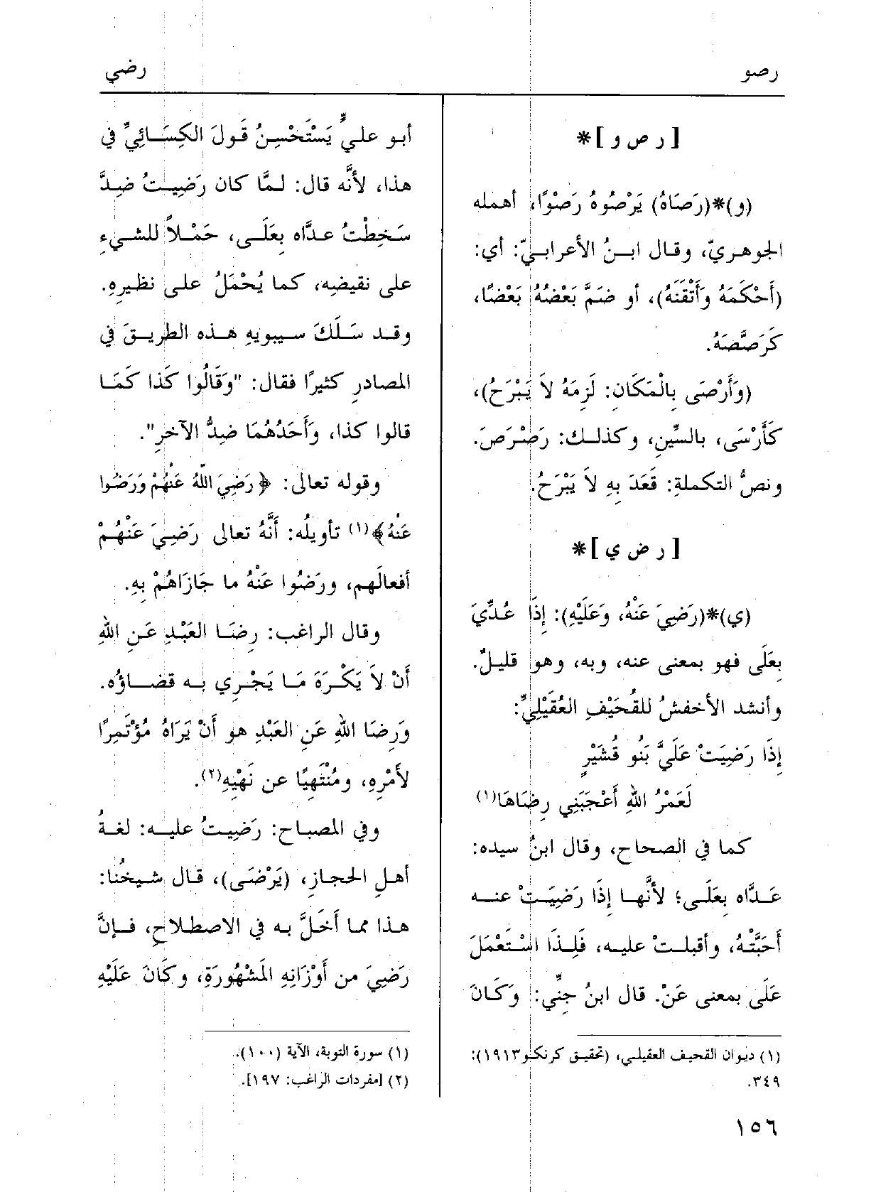وَفِي المِصْباح: {رَضِيت عَلَيْهِ لُغَةُ أَهْلِ الحِجازِ.