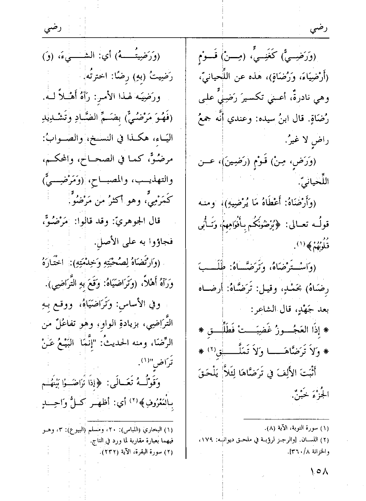 وَفِي الأساسِ: {وتَراضَياهُ ووَقَعُ بِهِ التَّراضِي، بزِيادَةِ الواوِ وَهُوَ تَفاعلٌ مِن الرِّضا؛ وَمِنْه الحدِيثُ: (إنَّما البَيْعُ عَن} تَراضٍ) .