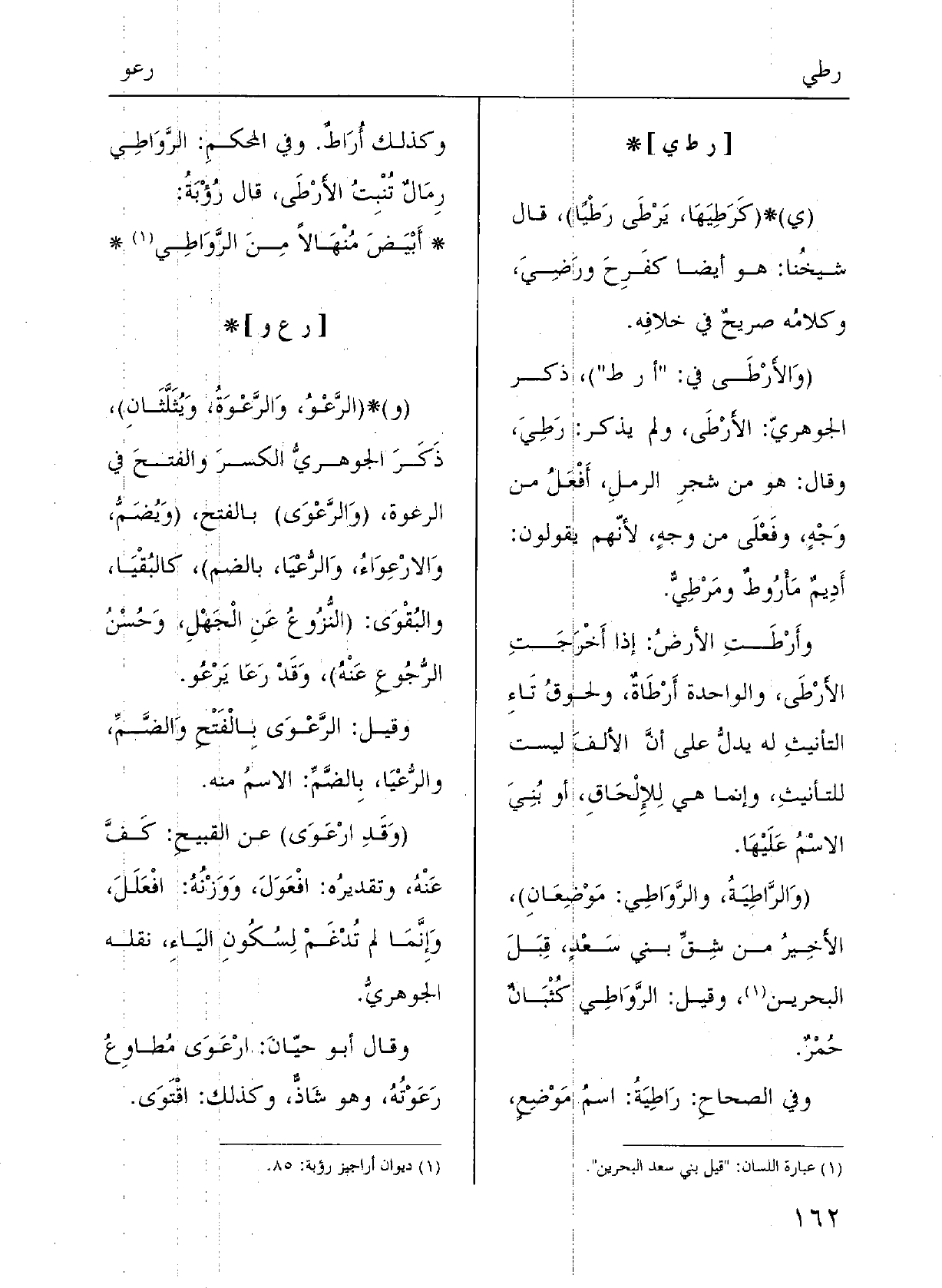 وَفِي المُحْكَم: الرَّواطِي رِمالٌ تُنبِتُ الأَرْطَى؛ قالَ رُؤْبَة: