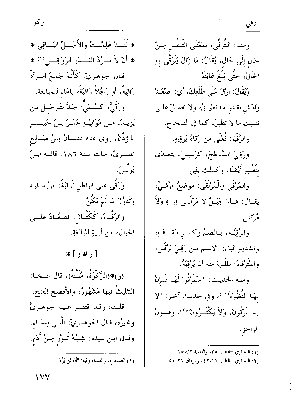 أَنْ لَا تَرُدَّ القَدَرَ} الرَّواقي قَالَ الجوهريُّ: كأنَّه جمَعَ امْرأَةً {راقِيَةً أَو رجُلاً} راقِيةً بالهاءِ للمُبالَغَة.