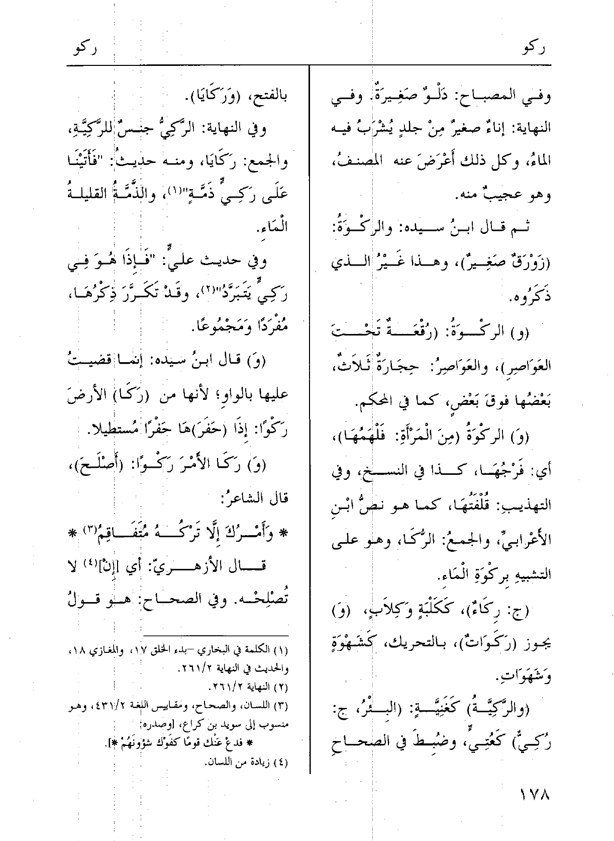 ثمَّ قالَ ابنُ سِيدَه: {والرَّكْوَةُ (زَوْرَقٌ صَغيرٌ) ؛ وَهَذَا غير الَّذِي ذَكَروه.
