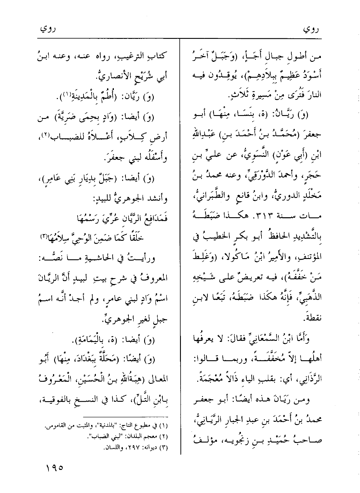 خَلَقاً كَمَا ضَمِنَ الوُحِيَّ سِلامُهاورأَيْتُ فِي الحاشِيَةِ مَا نَصّه: المَعْروفُ فِي شرْحِ بيتِ لبيدٍ أنَّ الرَّيَّان اسمُ وادٍ لبَني عامِرٍ، وَلم أجِد أنَّه اسمُ جَبَلٍ لغيرِ الجوهريِّ.